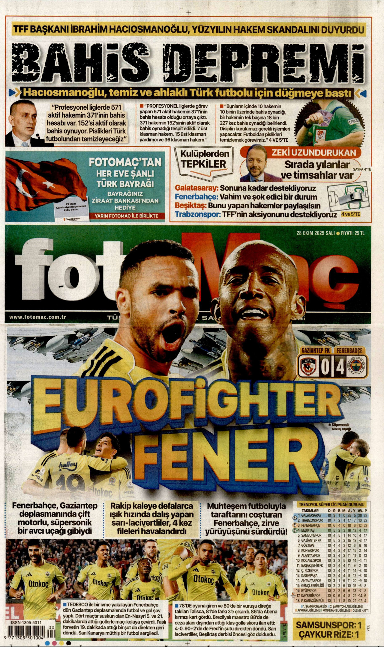 FOTOMAÇ Gazetesi 28 Ekim 2025, Salı Günü Manşeti